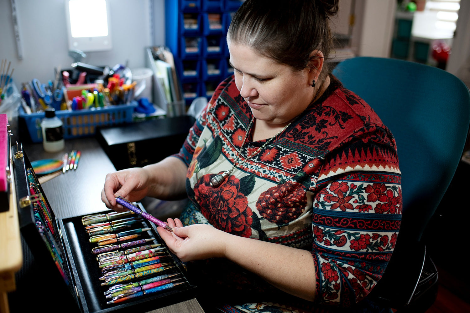 Voir les produitsInventé par l'artisane; Idéal pour ceux souffrant de problèmes d'arthrite et/ou de préhension, notre stylo unique allie estime de soi et fonctionnalité.