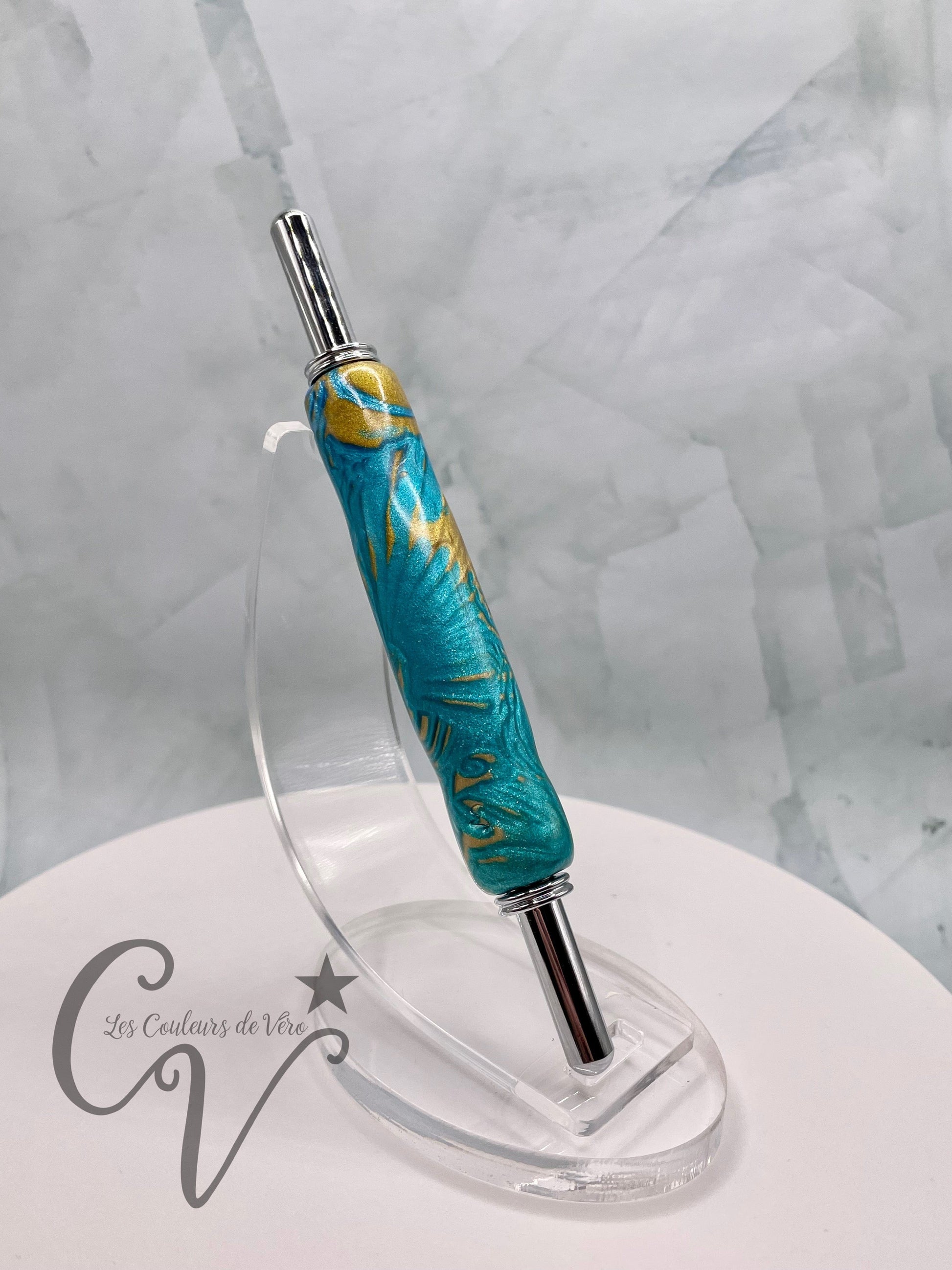 chrome metal Shell Pattern Turquoise Blue Gold - large format seam ripper tip + stiletto blade