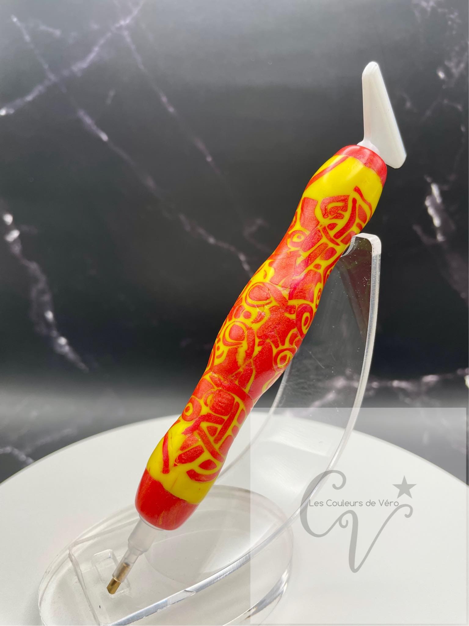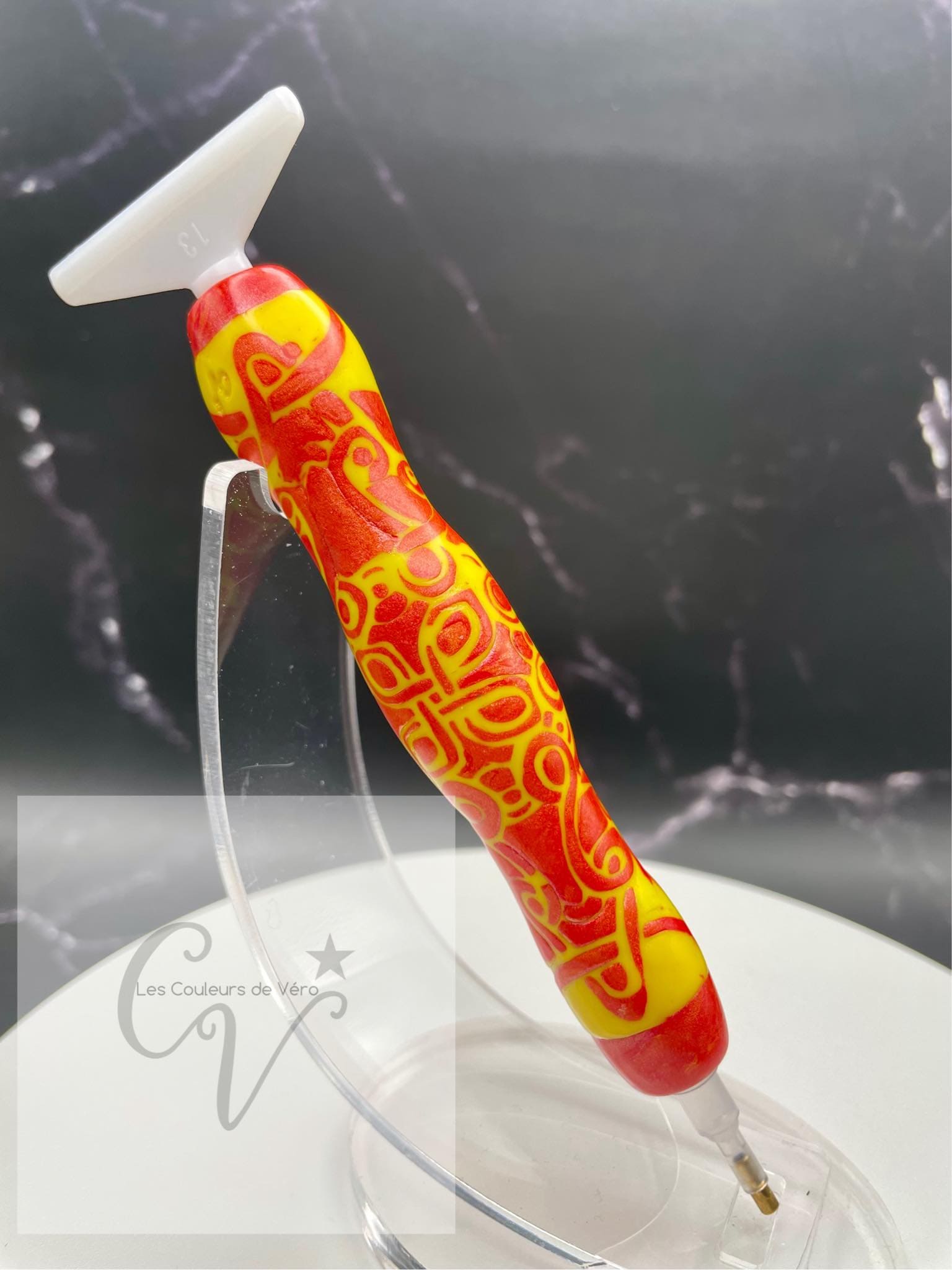 This diamond painting stylus, made of polymer clay, is hand-molded. Incredibly durable and light . Casting made in a larger shape as required. These styluses are intended to be more comfortable for everyone, even those with joint conditions , nerve conditions, or other diagnoses/problems that make thin styluses difficult or painful to use.