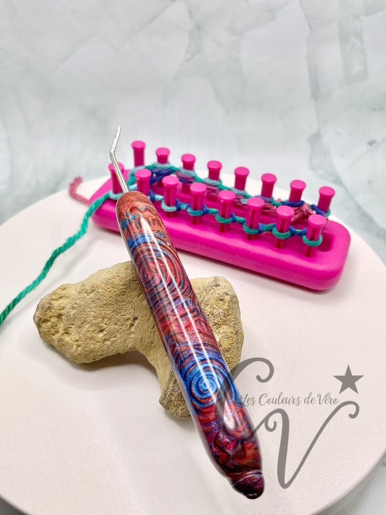 Outil tricotin ergonomique; Un monde de rouge et bleu!