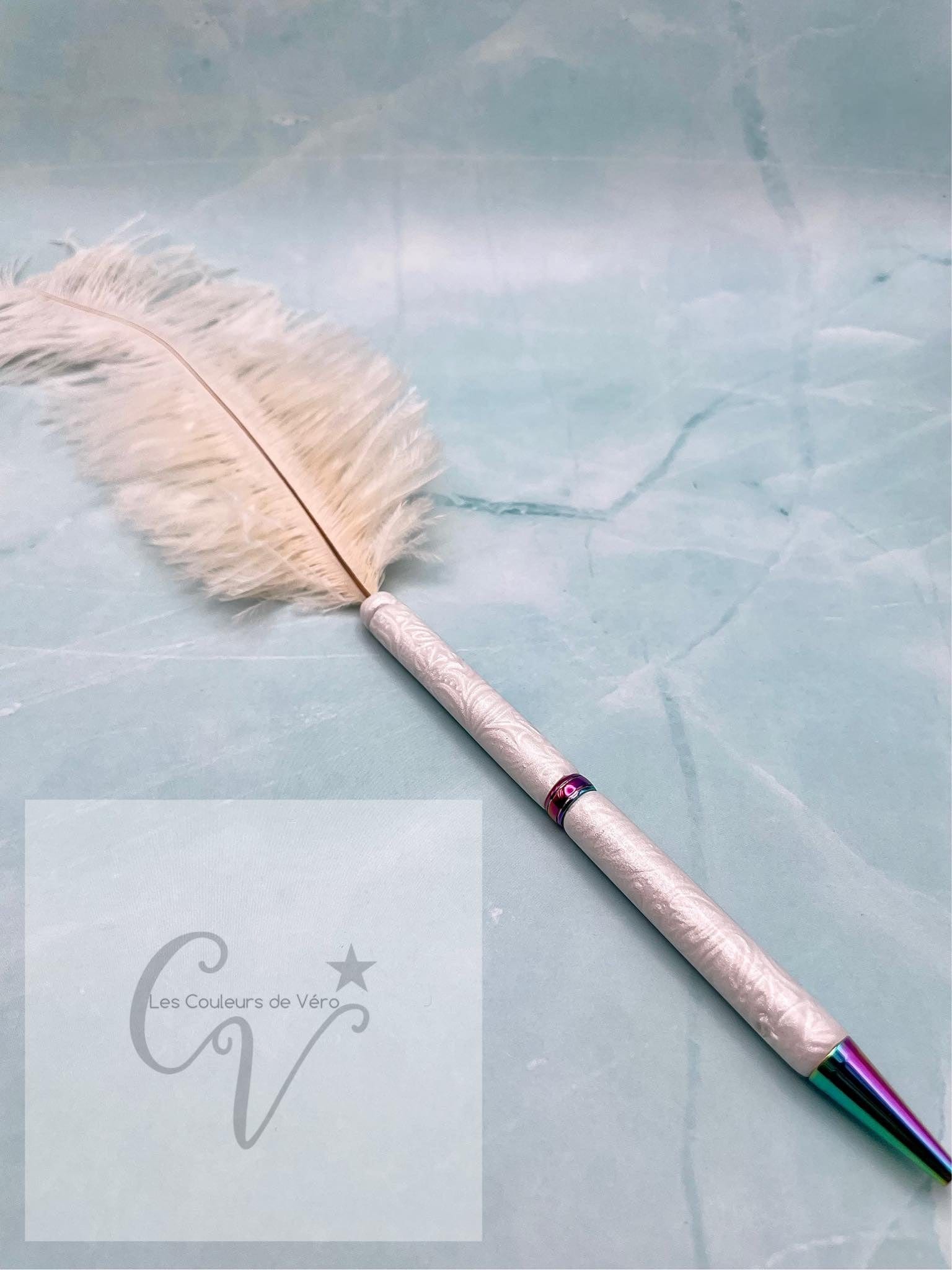Stylo bille de collection à torsion mince Slimline; En pâte polymère, finissions plume d'autruche!