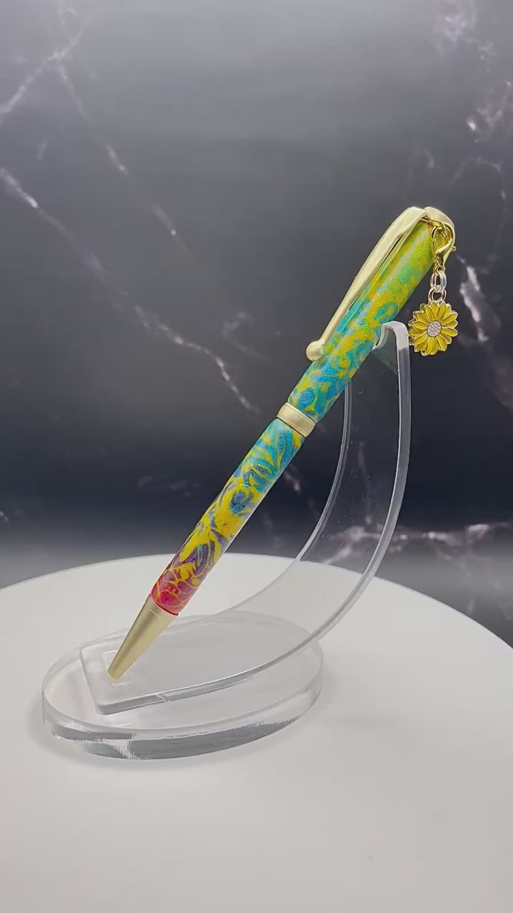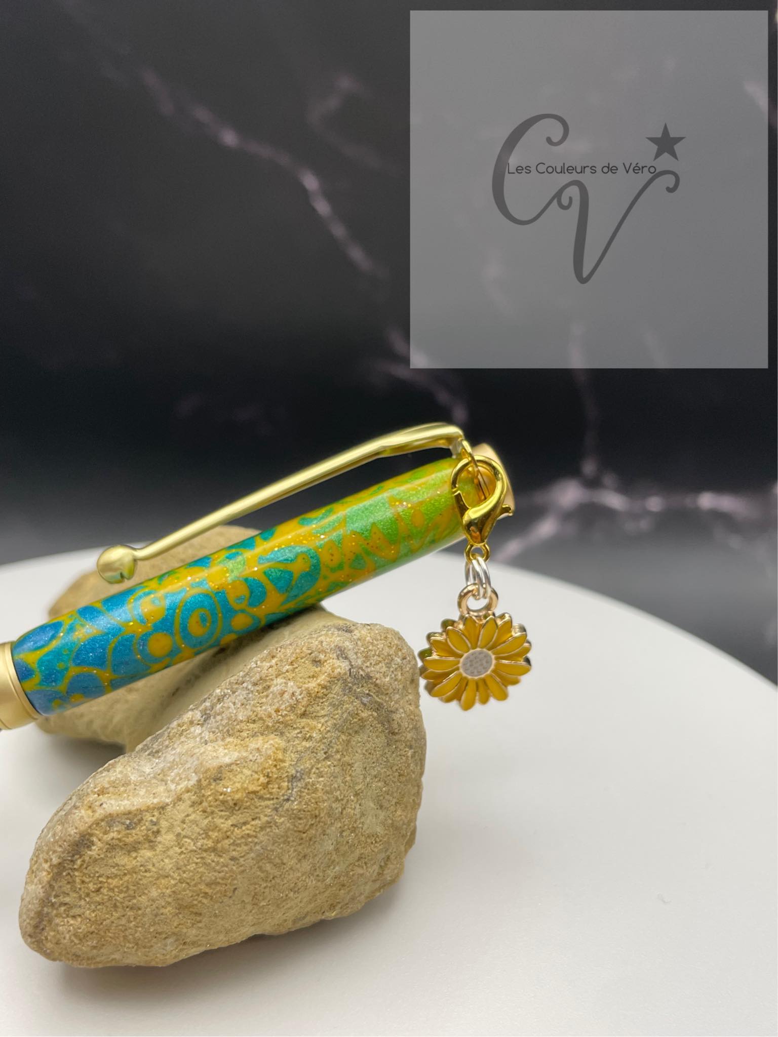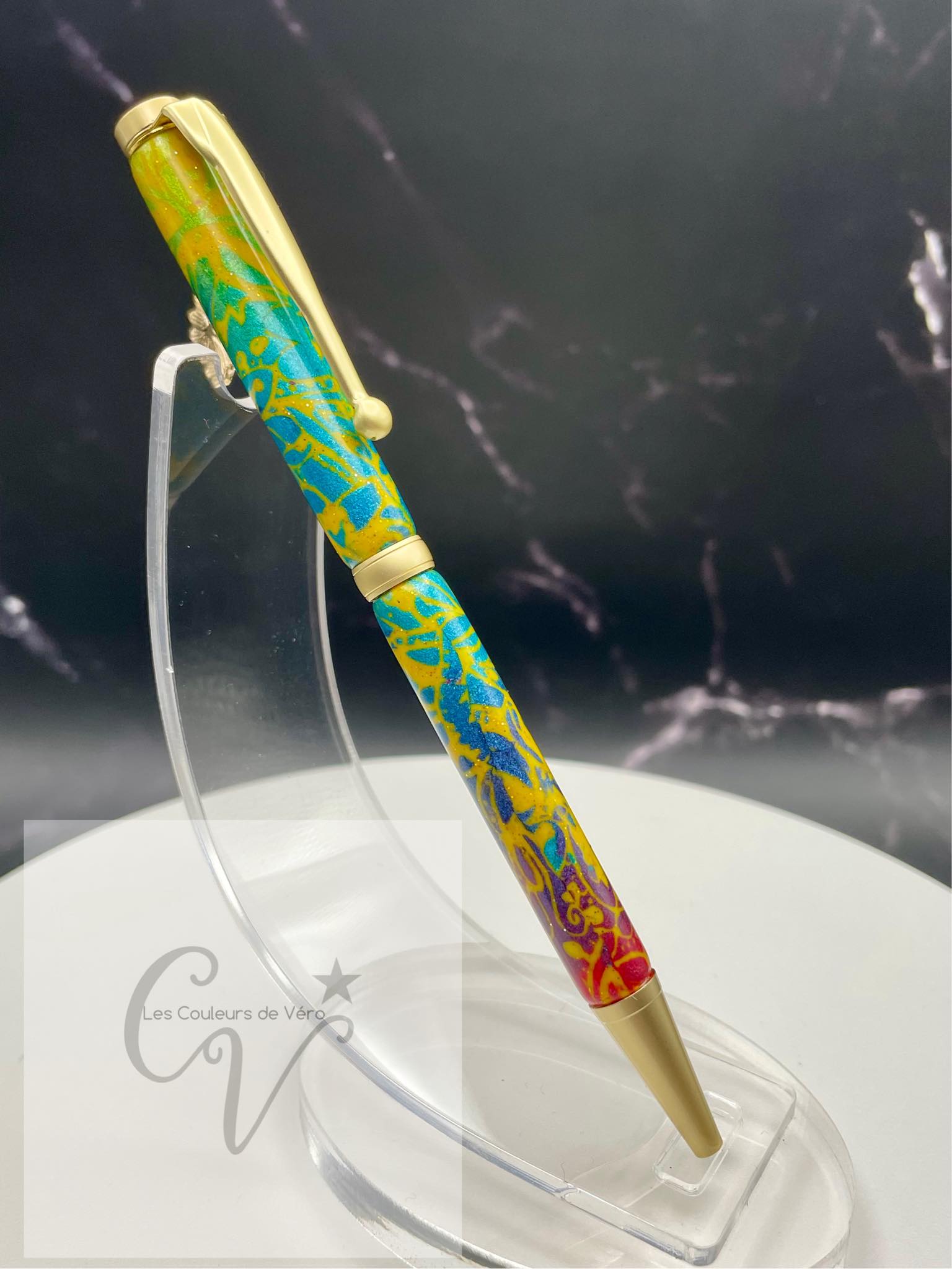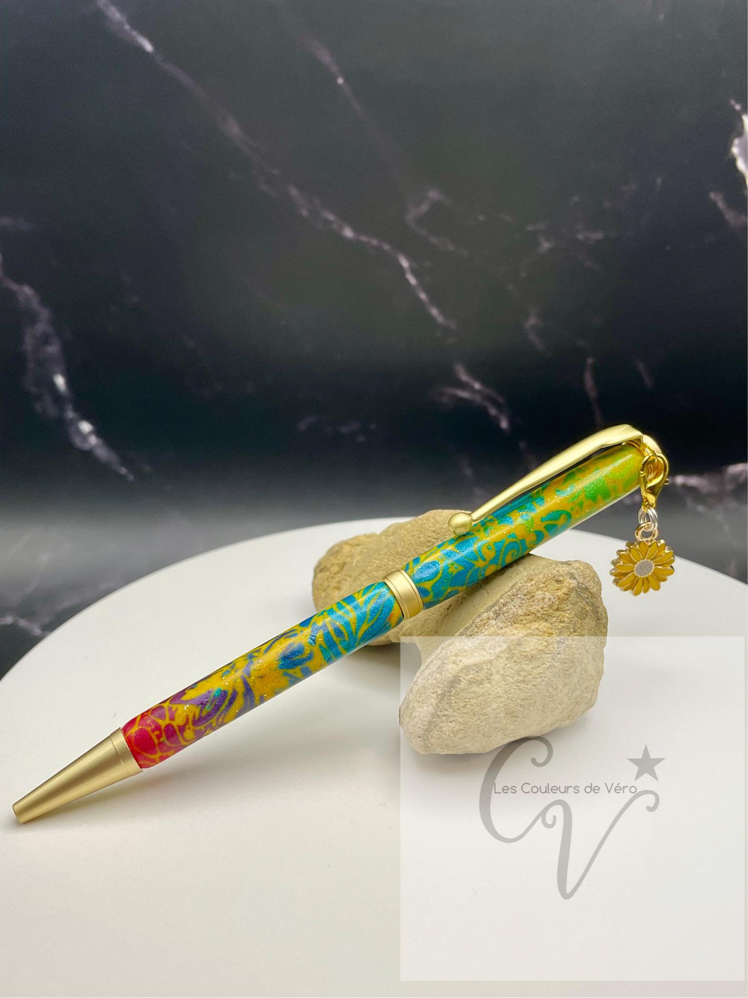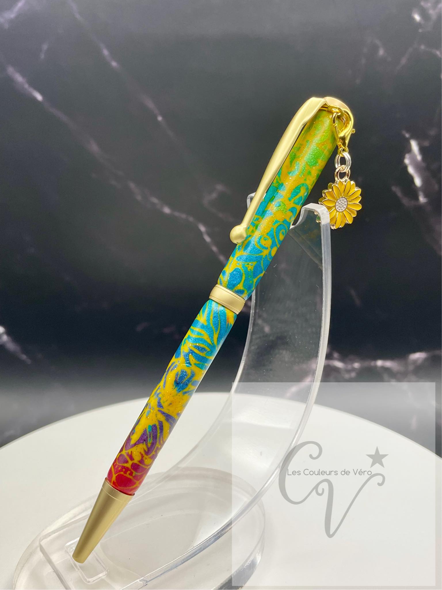 Cet incroyable stylo est doux et lisse au touché, avec un motif unique fait à la main en pâte polymère. La pâte a été minutieusement appliquée sur les tubes du stylo et a été poncée et vernis pour une finition éblouissante et durable. Fabriqué au Québec par une talentueuse artisane locale, ce stylo est un véritable chef-d'œuvre.