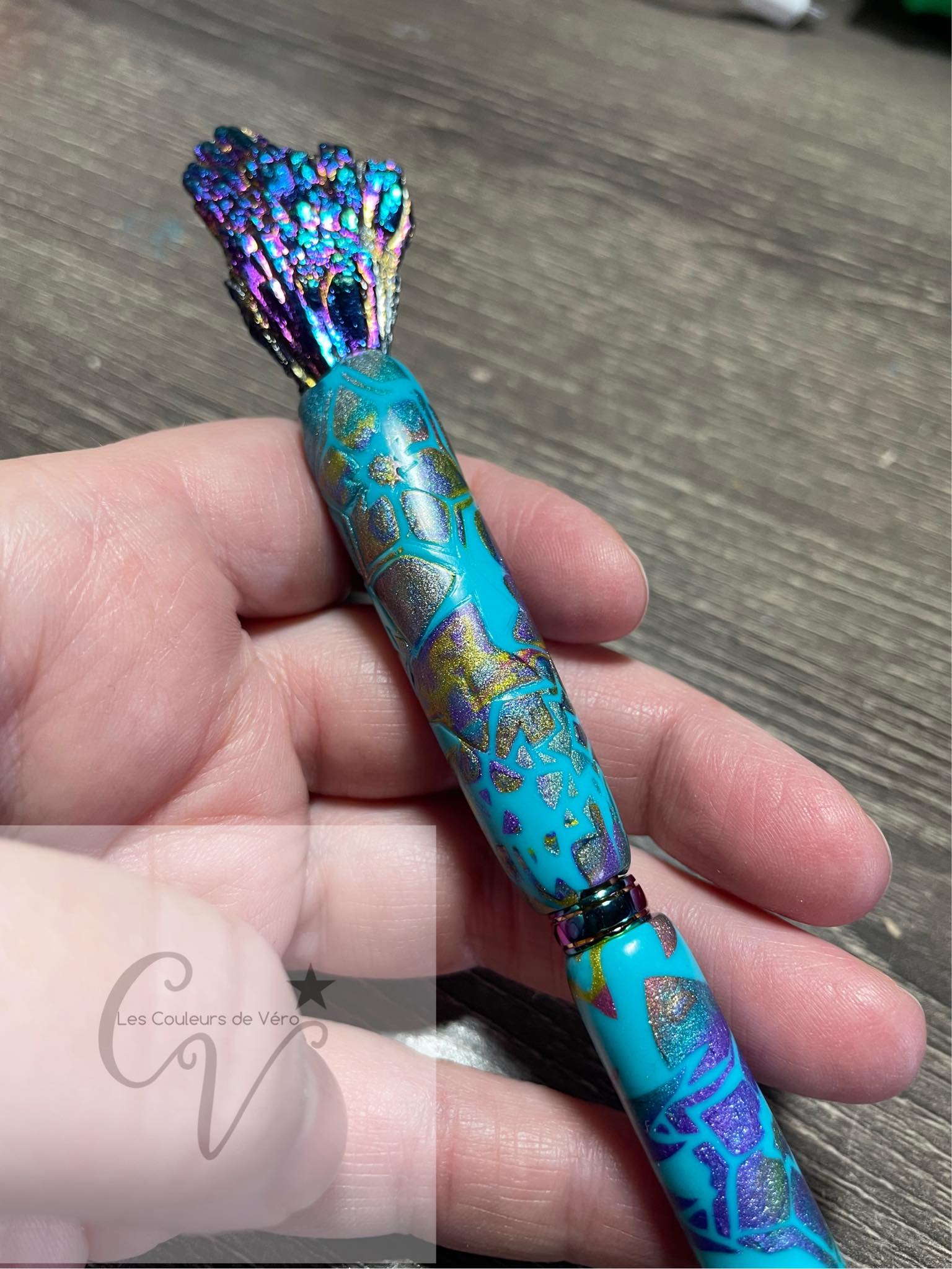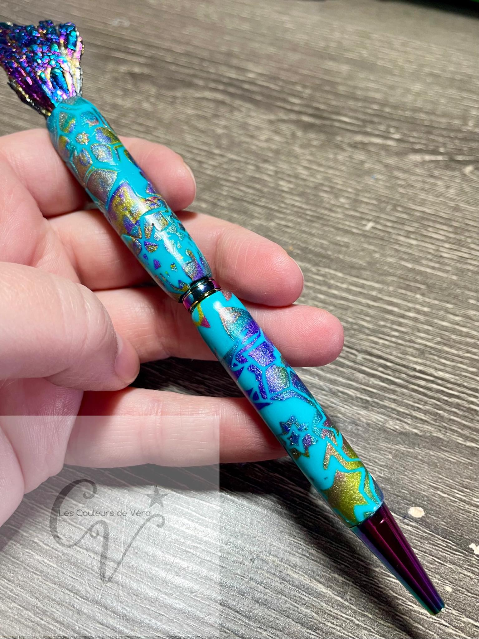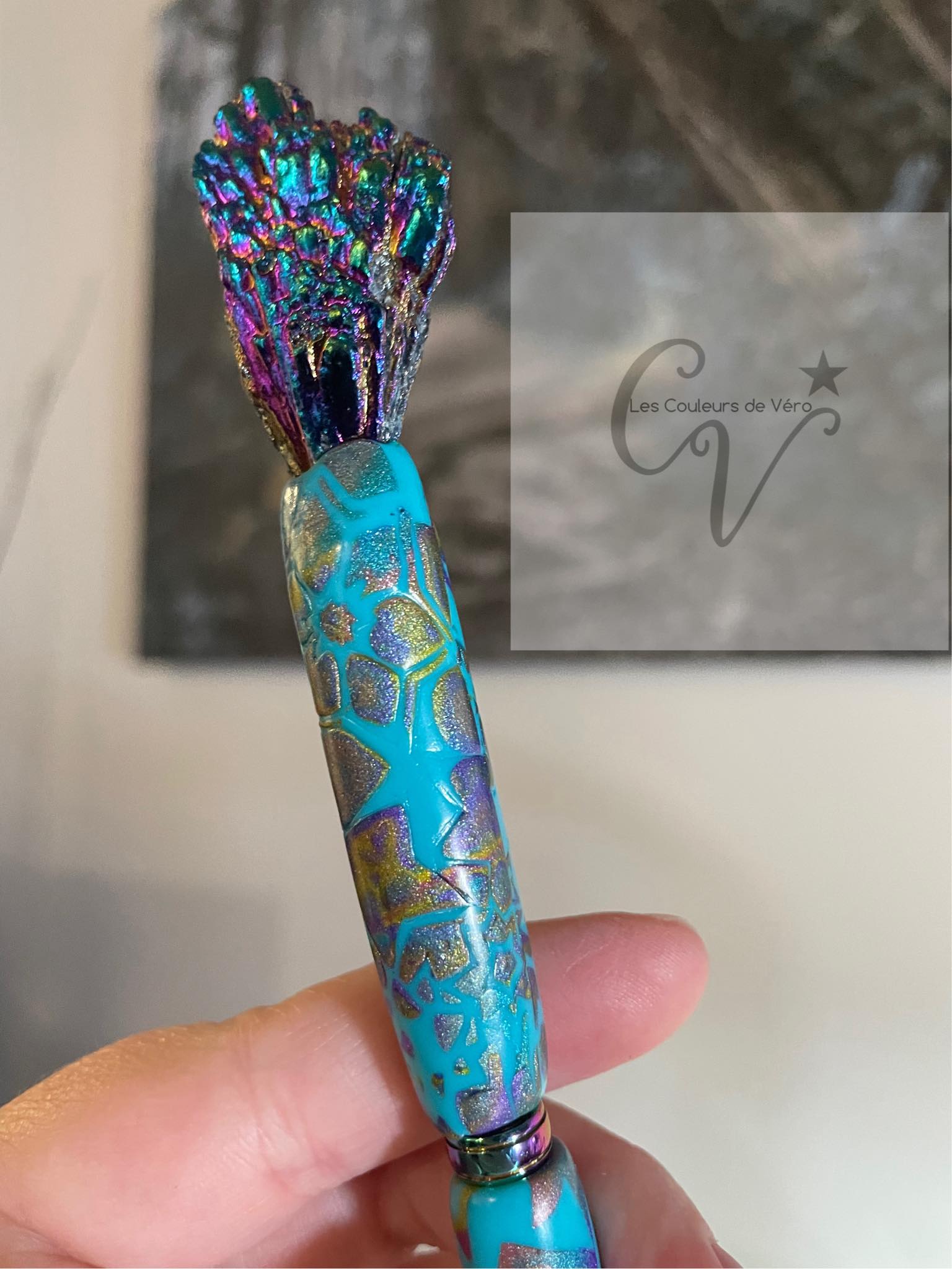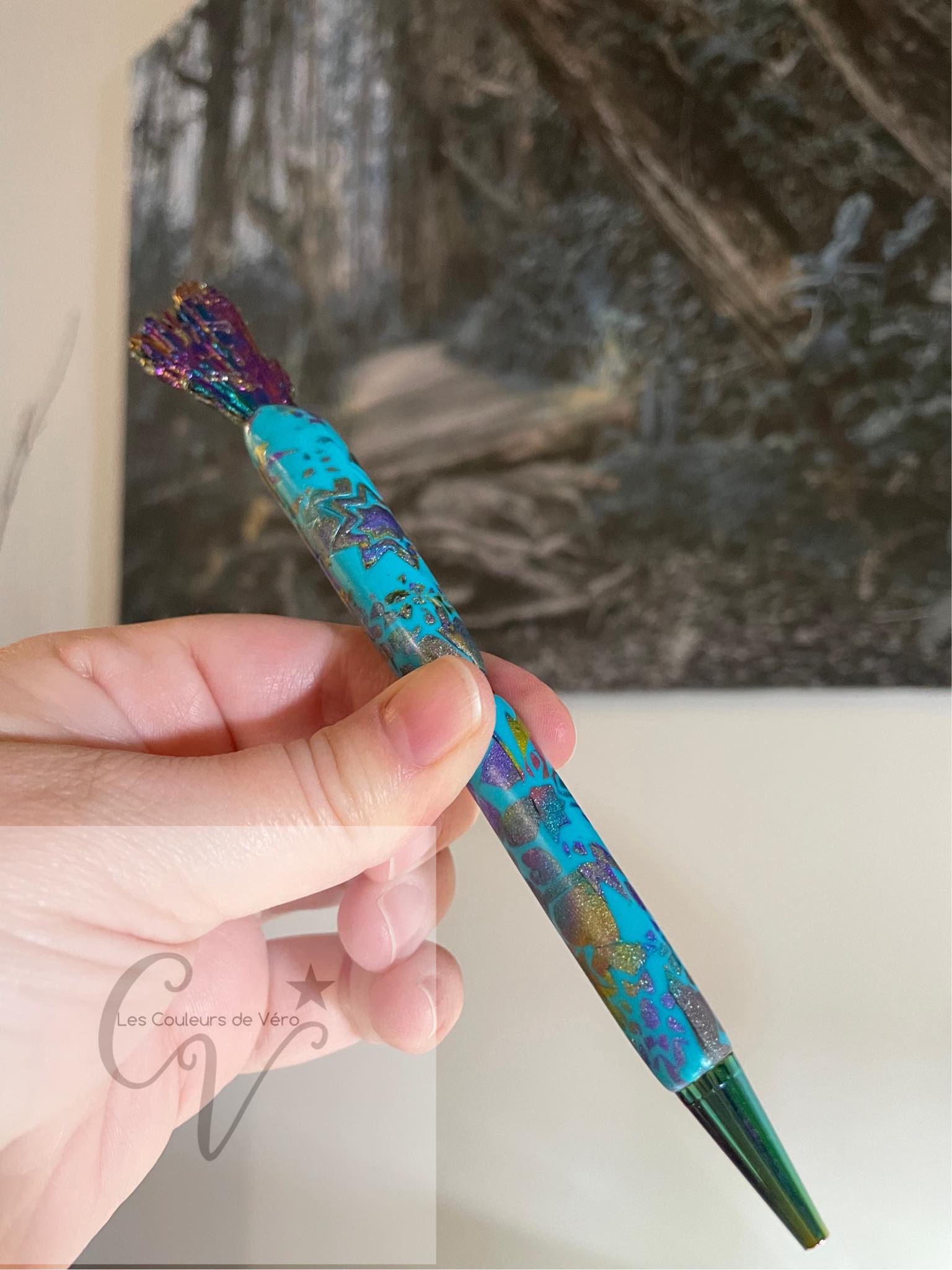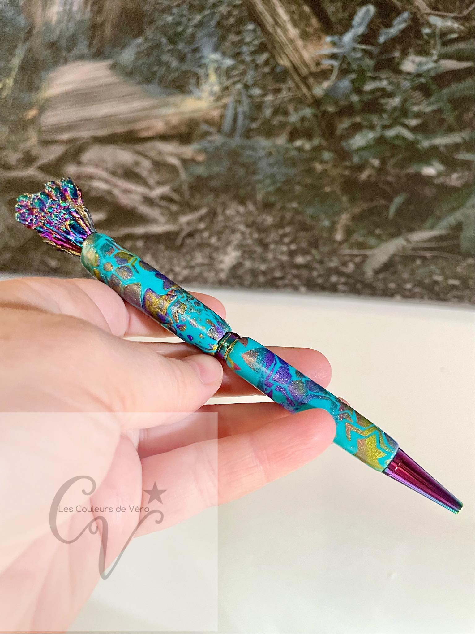 Découvrez le stylo bille en pâte polymère orné d'une pierre précieuse Tourmaline Noire Naturelle. Chaque pièce est unique et a nécessité plus de 6 heures de travail par un artiste expert. Profitez d'un instrument d'écriture à la fois artistique et fonctionnel pour ajouter une touche d'élégance à vos écrits.